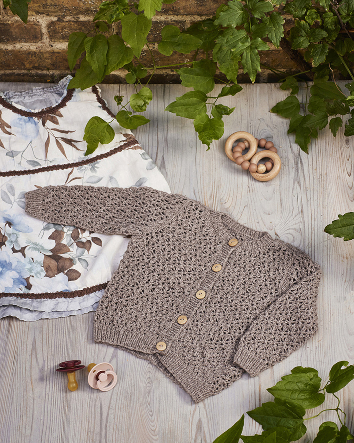 Modellen er strikket i 882715/Cafe latte