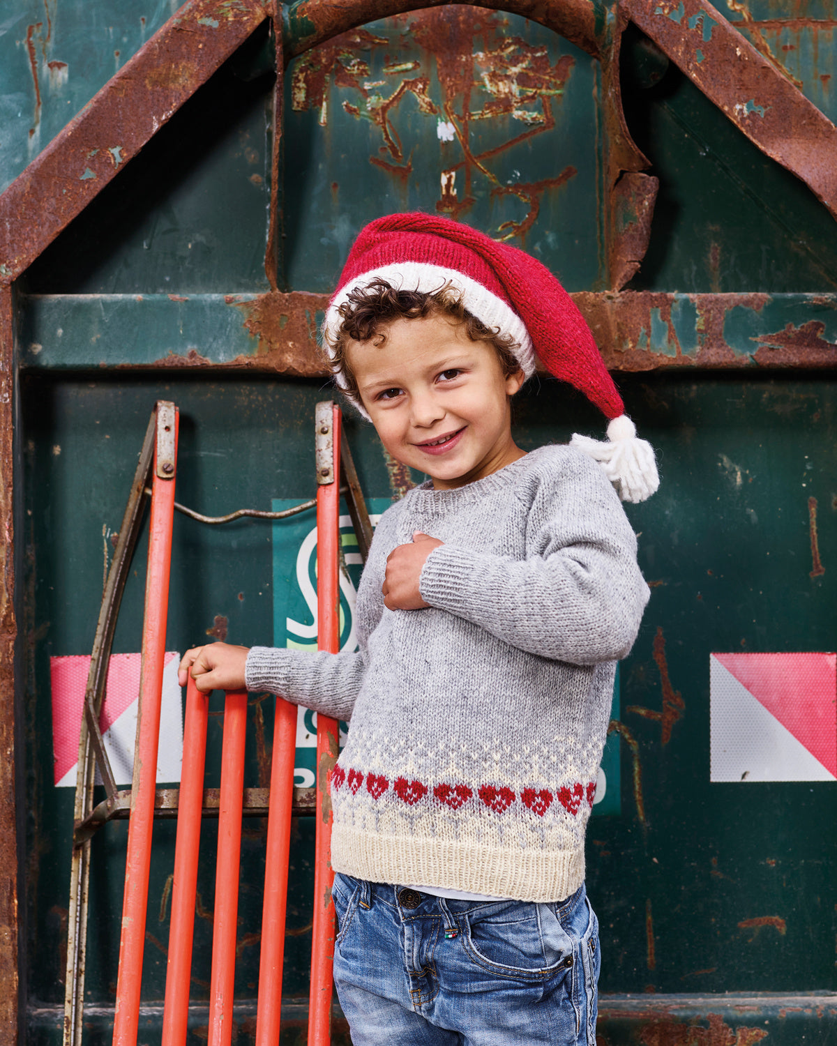 Størrelse: 2-4 (4-8) 10-14 år Omkreds: ca.42 (47) 51 cm Hel længde: ca. 40 (44) 48 cm Garn: Alice by Permin Garnforbrug: 1 (1) 1 ngl. i hvid og 1 (1) 2 ngl. i rød Strikkefasthed: 18 m x 24 p = 10 x 10 cm i glatstrik på p nr. 6
