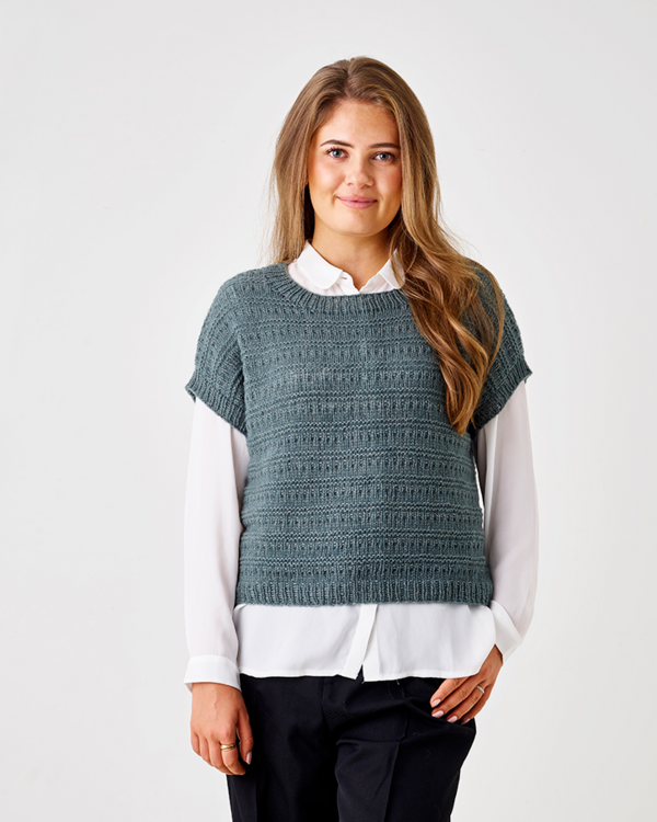 | Garnforbrug | 100 (125) 150 (200)g Hannah by Permin (25g = 275m) Trøjen på billedet er strikket i farven Patina Grøn (880111) |